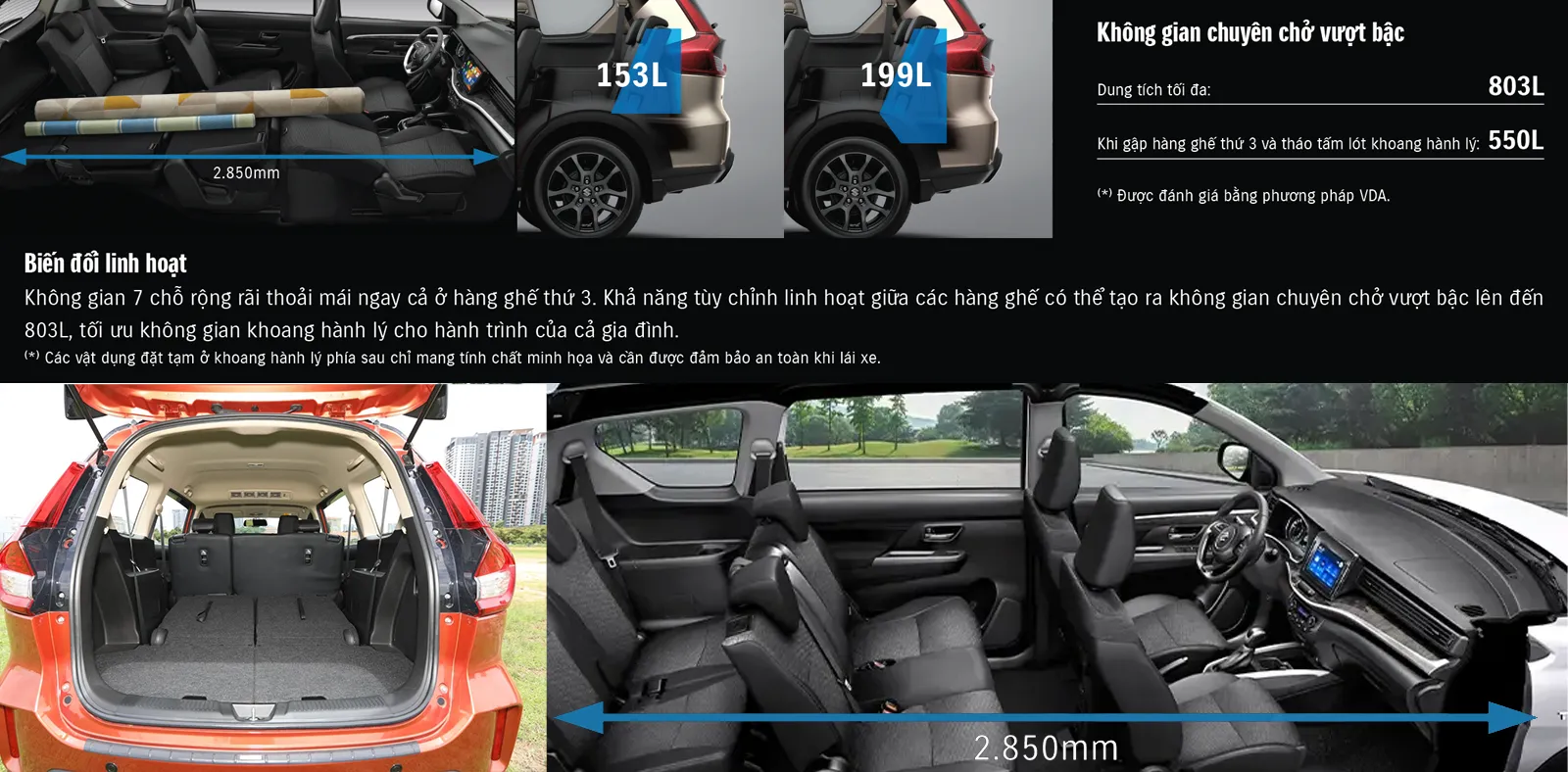 Không gian nội thất của Suzuki XL7 Hybrid 2025 được thiết kế rộng rãi, thoải mái cho cả 7 hành khách và linh hoạt khi chở hàng hoá