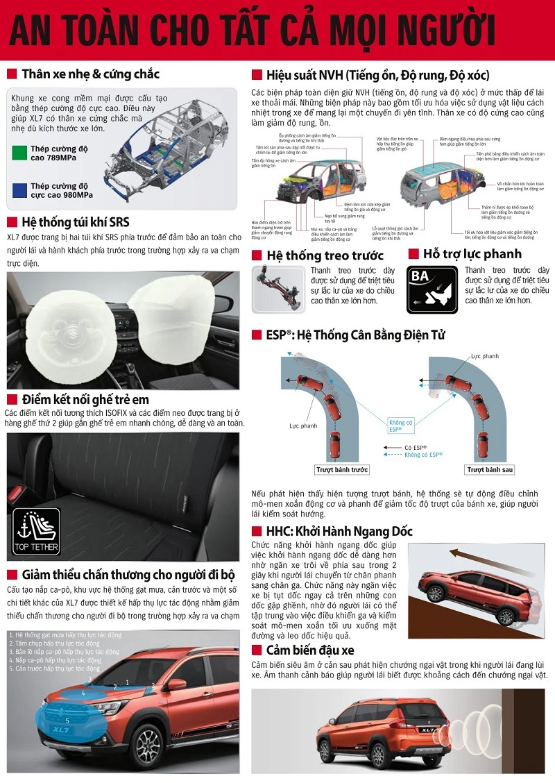 Suzuki XL7 Hybrid 2025 được trang bị nhiều tính năng an toàn tiên tiến, giúp bảo vệ bạn và gia đình trên mọi hành trình
